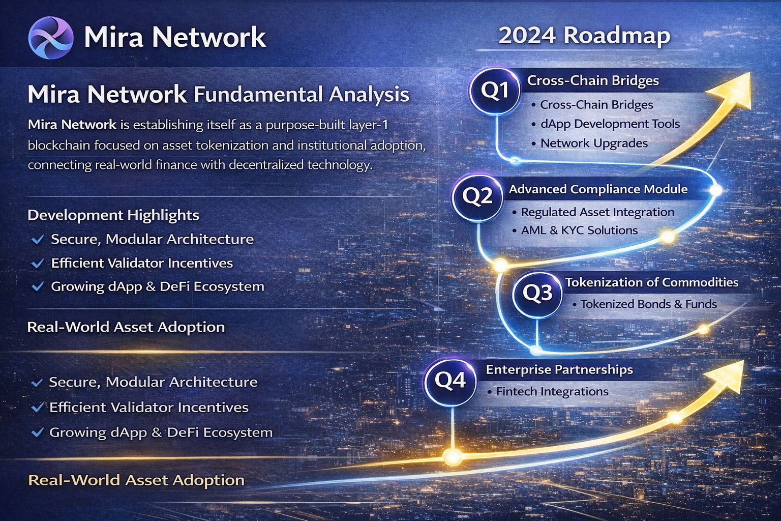 The roadmap of Mira Network focuses on expanding both the technological infrastructure and the application ecosystem. Early stages concentrated on building the protocol architecture, designing the tokenomics model, and launching the initial testnet environment.