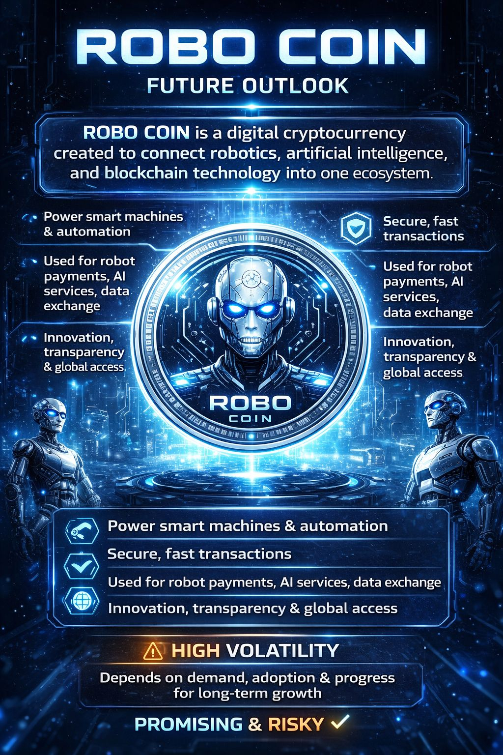 #Robo #btc #xrp Robo Coin is a digital cryptocurrency created to connect robotics, artificial intelligence, and blockchain technology into one ecosystem. It aims to power smart machines, automated systems, and decentralized applications by providing secure and fast transactions. Robo Coin can be used for robot-to-robot payments, AI service fees, data exchange, and technology-based projects. The project focuses on innovation, transparency, and global accessibility. Like all cryptocurrencies, Robo Coin is highly volatile and depends on market demand, adoption, exchange listings, and strong development progress for long-term growth and stability.