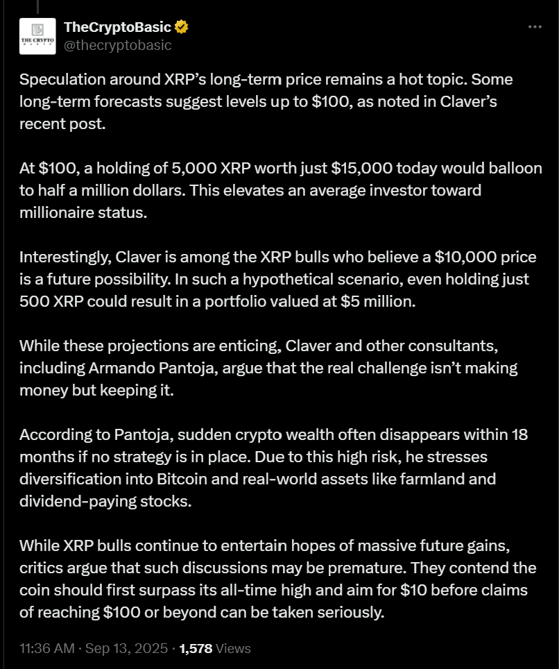 Es wurden einige skandalöse Vorhersagen über den Preis von XRP gemacht, wie dass die von Ripple stammende Kryptowährung 10.000 Dollar erreichen könnte.