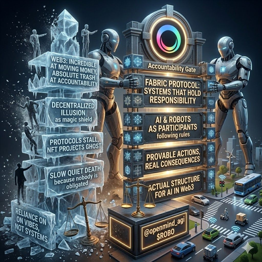 The crypto industry has mastered the art of capital velocity, but we have completely failed at designing systems that enforce actual responsibility. We spin up multi sigs, launch DAOs, and the exact moment a bear market hits or a roadmap gets complicated, the anonymous signers evaporate into thin air. We've collectively pretended that the word "decentralized" means "nobody has to be accountable." That illusion is fine when we are just trading JPEGs or farming yield.