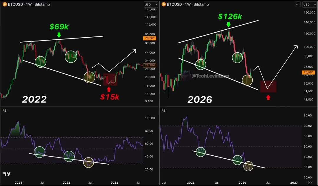 Einige Trader glauben, dass $BTC ein Setup zeigt, das dem Zyklus von 2022 ähnlich ist.