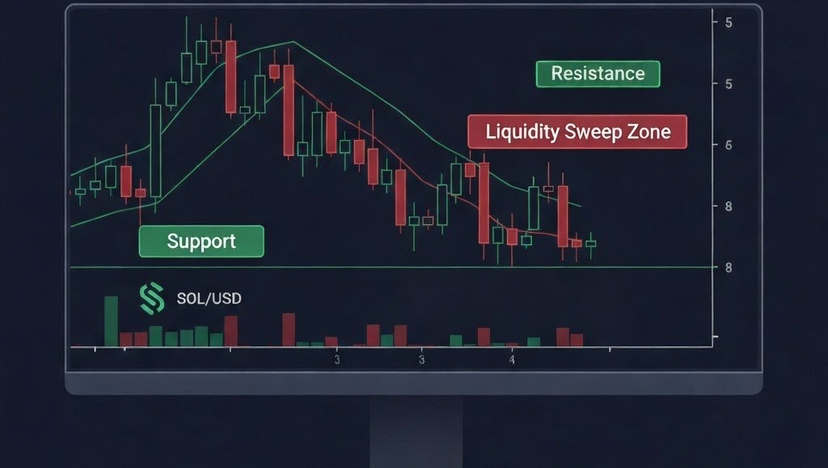 Das Szenario mit der höheren Wahrscheinlichkeit ist ein Sweep der Zone $78–$85, bevor es zu einer nachhaltigen Rallye kommt. Hohe Liquidität darunter wird typischerweise zuerst abgeräumt, während Marktteilnehmer Stopps jagen, bevor eine Umkehrung zulässig ist.