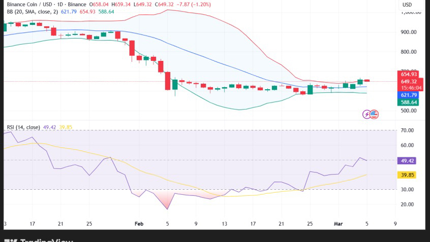 • Die BNB-Kette macht fast 40% des globalen Stablecoin-Volumens aus, was die Handelsstärke beweist. Dies unterstützt den Preis langfristig, obwohl es derzeit einen Rückgang wegen des allgemeinen Marktes gibt.