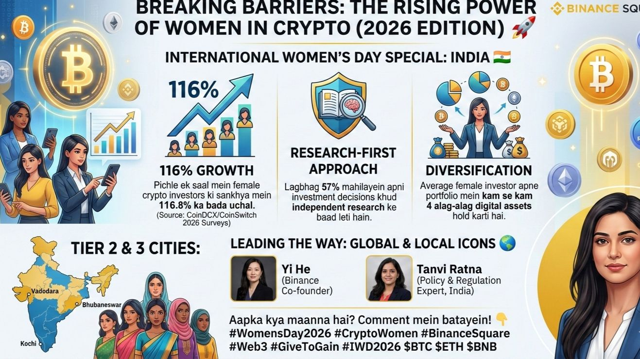 International Women's Day ke mauke par aaj hum un mahilayon ko celebrate kar rahe hain jo finance ke future ko reshape kar rahi hain. Crypto market ab sirf ek "boys' club" nahi raha; mahilayein isme ek major driving force ban kar ubhri hain.