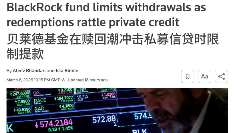 BlackRock hat einen privaten Kreditfonds von 26 Milliarden Dollar, die Kunden wollten 1,2 Milliarden Dollar (das sind etwa 5 % des gesamten Fonds) zurückziehen. Was ist passiert? BlackRock hat einfach gesagt: "Es tut uns leid, ihr könnt euer eigenes Geld nicht zurückbekommen."