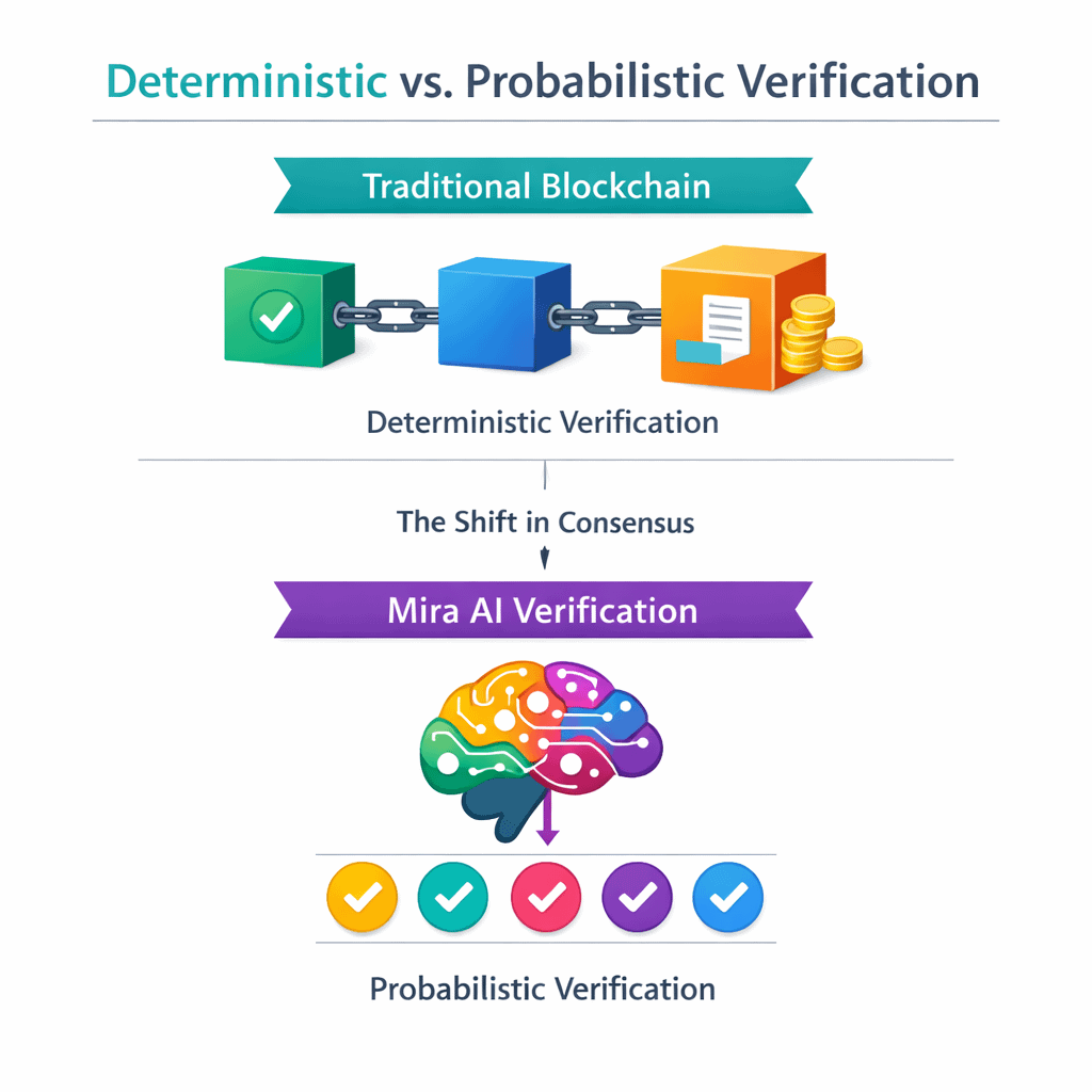 From my perspective, this creates a new type of consensus problem. Instead of validating currency transfers or contract execution, the network must validate claims about what an AI system did. That means consensus mechanisms need to address questions that are not always present in traditional blockchain systems. For example, how does the network confirm that an AI model actually followed a particular set of rules or constraints? How do validators determine whether reported outputs correspond to the claimed inputs? These are not trivial challenges. Consensus mechanisms are usually designed around deterministic events. A transaction either occurred or it did not. A smart contract either executed according to its code or it failed. AI systems behave differently. Their outputs often depend on probabilistic models and complex internal processes. This creates an interesting tension between deterministic verification and probabilistic intelligence. From what I can see, Mira’s ecosystem attempts to handle this tension by separating the verification of conditions from the interpretation of results. Validators are not necessarily judging whether an AI’s decision was correct or optimal. Instead, they verify whether the system operated under the conditions it claimed to follow. I find that distinction important because it narrows the scope of consensus. The network is not trying to decide whether an AI system made the best possible decision. It is attempting to confirm that the system behaved according to the rules and inputs it reported. That approach makes consensus more manageable, even if the underlying AI remains complex.