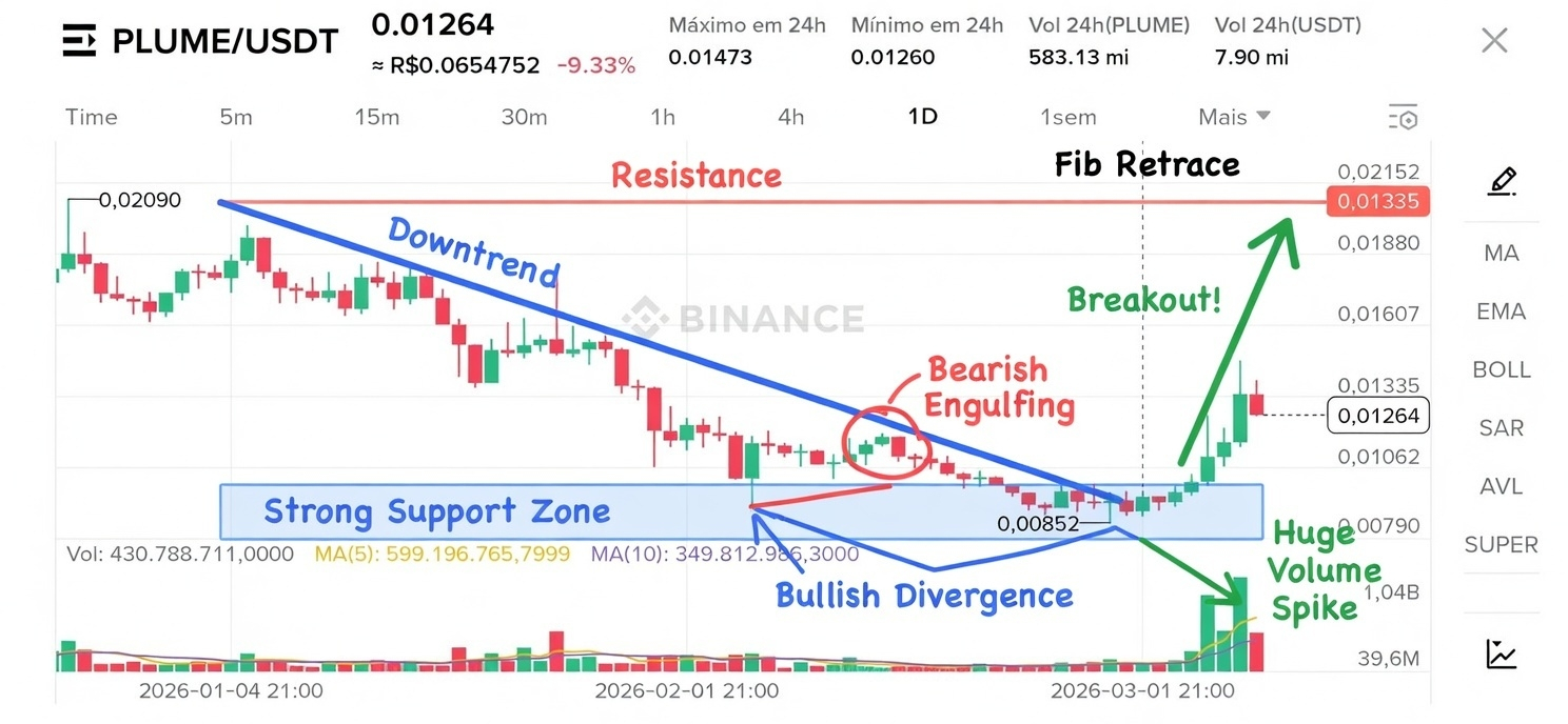 Schau dir nur dieses PLUME/USDT-Diagramm auf Binance an: