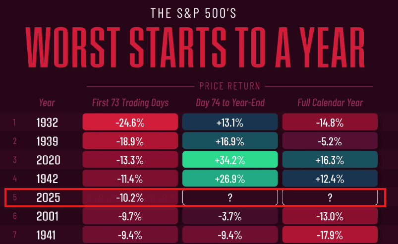 Die Märkte haben Zölle frühzeitig im Jahr 2025 eingepreist – S&P fiel um 10,2 % in den ersten 73 Handelstagen.