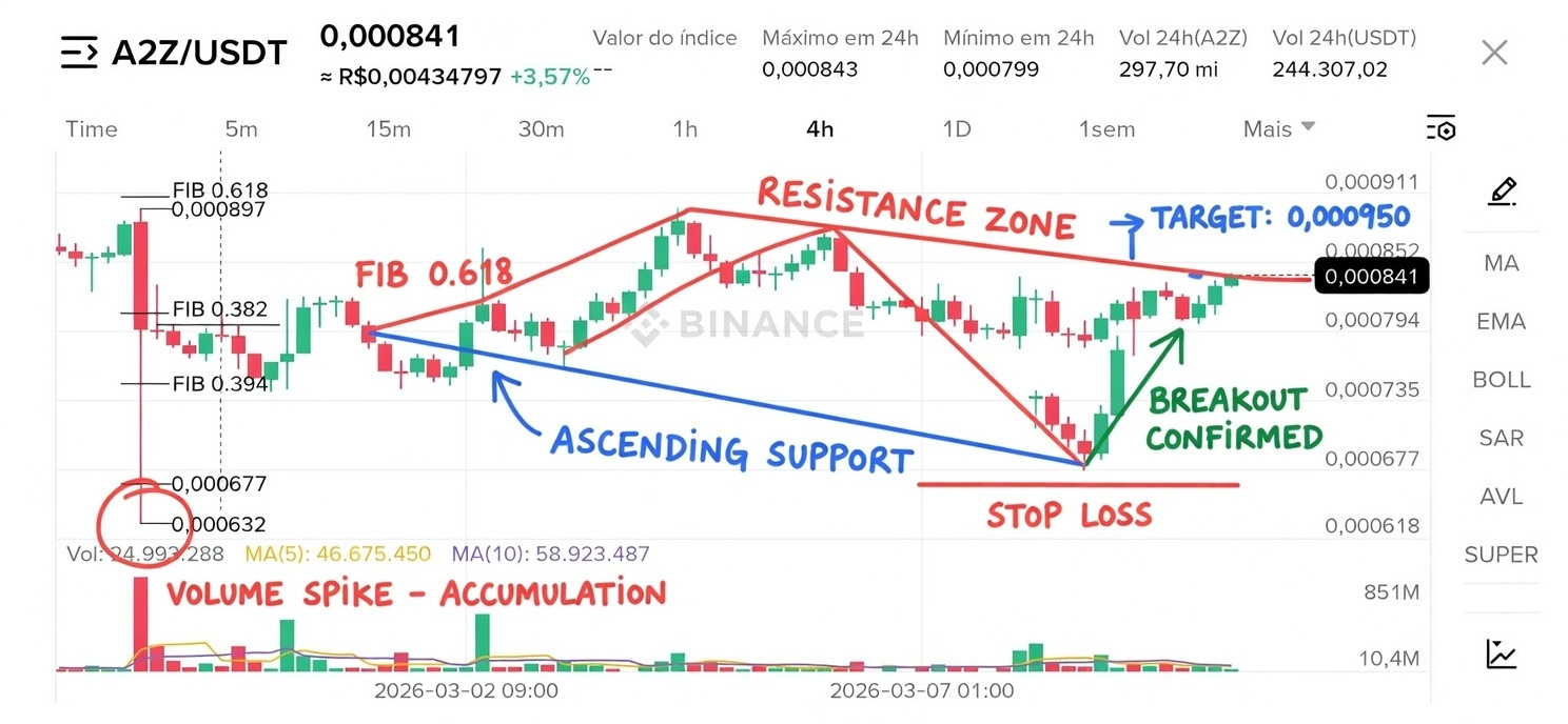 🔥 A2Z em 0.00008441 – confirmação de breakout ou só mais um pump & dump?