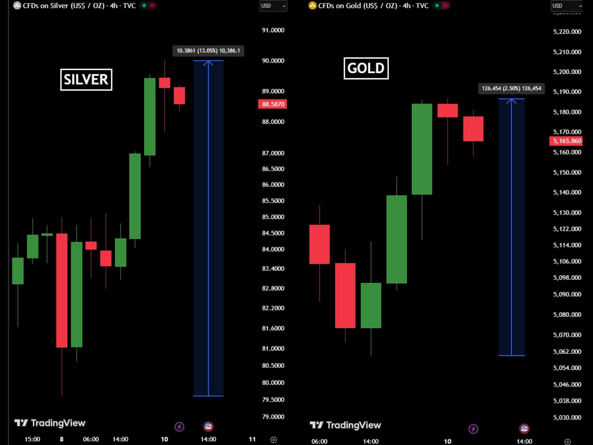 Silber stieg in kurzer Zeit um fast 13%, wÀhrend Gold um etwa 3% zulegte.