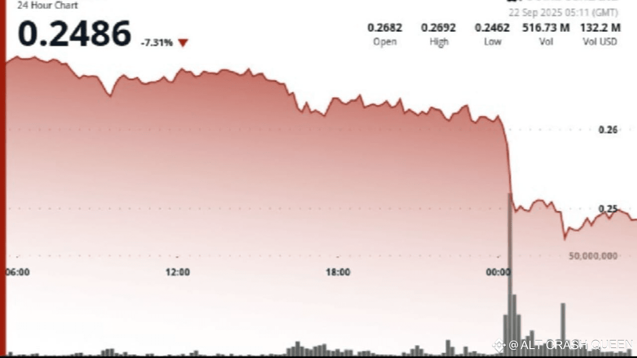 • $DOGE gefallen von $0.27 auf $0.25 — nächtlicher Abfluss bei einem Volumen von 2.15B Token