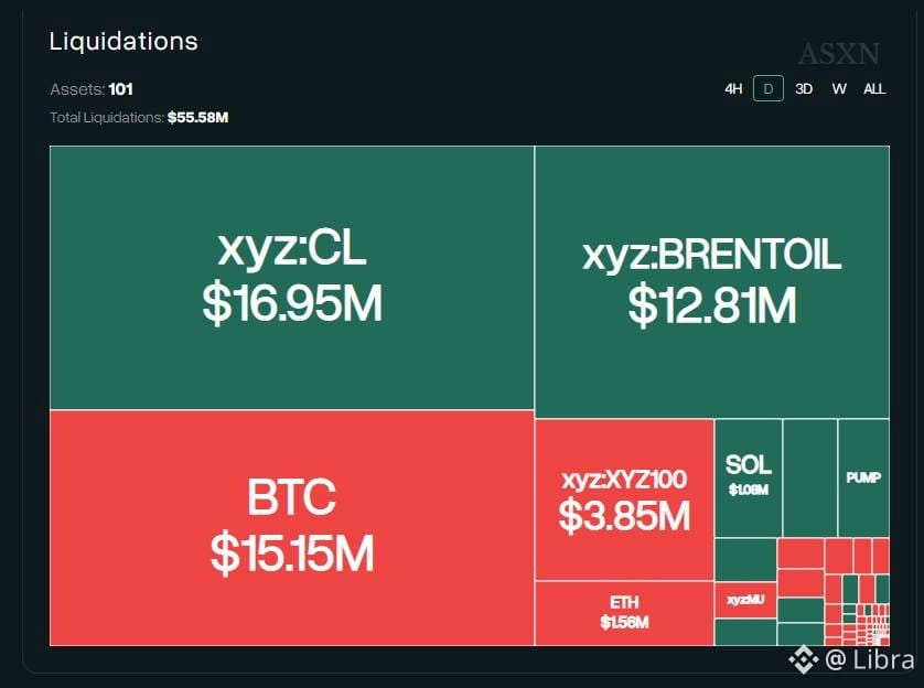 - Biến động mạnh của giá dầu cũng kéo theo làn sóng thanh lý đáng kể trên thị trường. Trong 24 giờ qua, các vị thế liên quan đến dầu thô trên Hyperliquid đã ghi nhận khoảng 16,95 triệu USD bị thanh lý, trở thành tài sản có lượng thanh lý lớn nhất trên nền tảng.