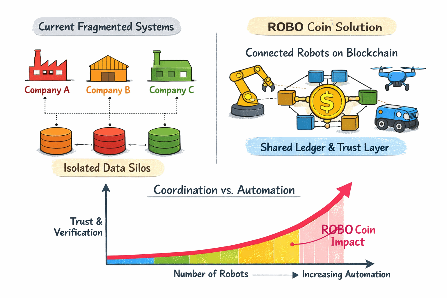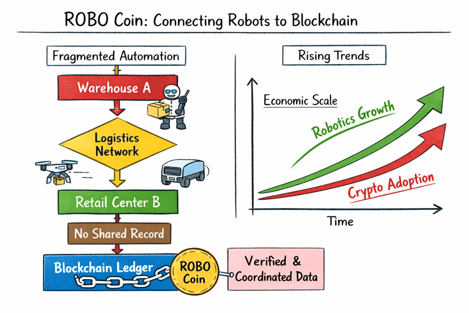 Seen from that angle, ROBO Coin is not primarily about trading tokens. It represents an attempt to build a neutral coordination layer between physical automation and digital verification systems.