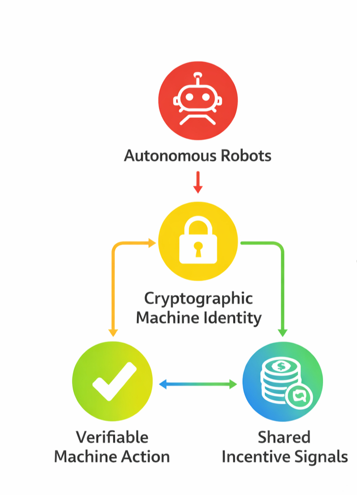 Another pressure involves identity. Machines must possess cryptographic identities that prove they are legitimate participants in the network. That identity acts like a digital passport attached to hardware. It allows the network to distinguish real machine actions from simulated data.