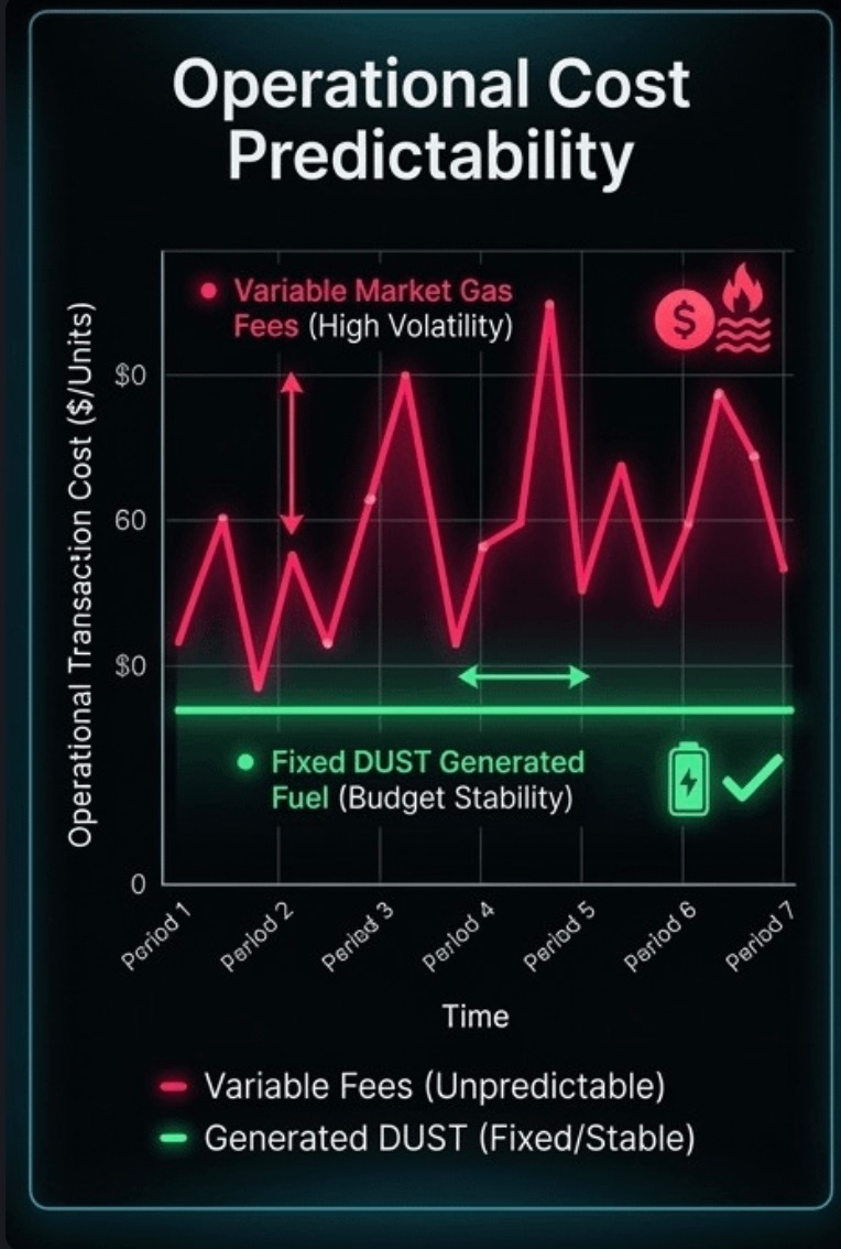 Midnight permanently solves this. The startup makes a one-time strategic acquisition of NIGHT coins for their treasury. This holding generates a steady, daily stream of DUST. Using this "free" fuel, their hospital operations and private data entries run flawlessly. Their daily overhead becomes perfectly predictable and immune to crypto market volatility. Whether the market pumps or crashes, their core business remains uninterrupted.