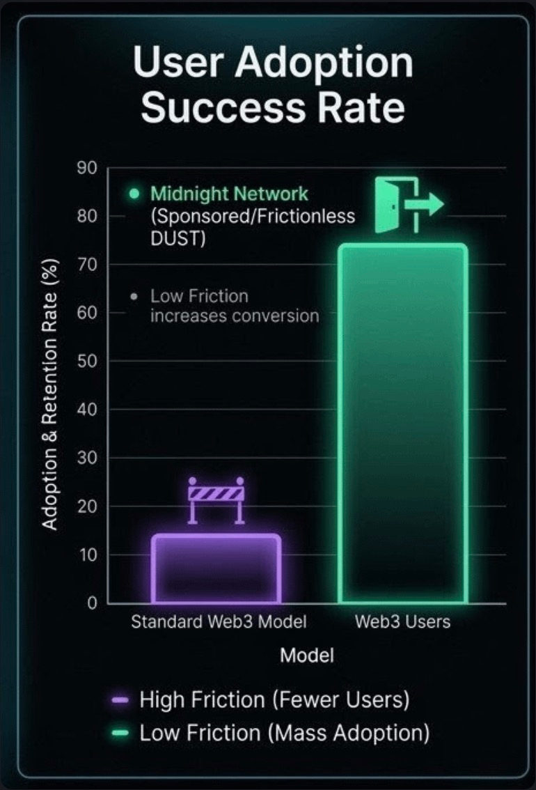 For Web3 developers, this model is a game-changer. High gas fees are the primary barrier to mass adoption; users hate paying out-of-pocket for every interaction. On Midnight, developers can hold enough NIGHT to generate the DUST required to subsidize transaction fees for their entire user base.