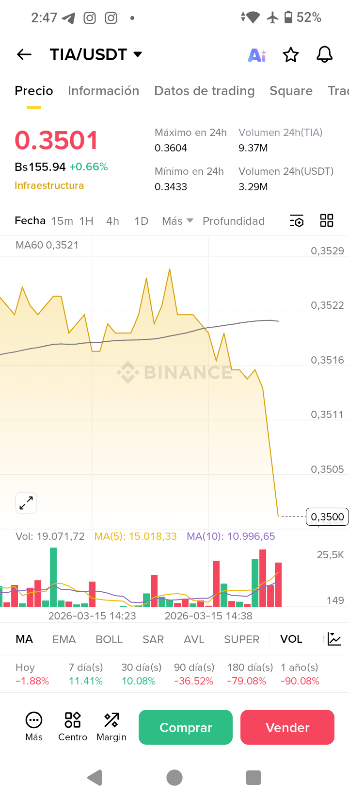 Si buscas una gema de infraestructura que aĂșn tiene mucho por recorrer, mira a TIA. Hoy cotiza a $0.35, subiendo un 3% en las Ășltimas 24 horas.