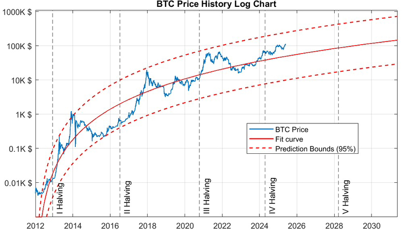Bitcoin vẫn duy trì xu hướng tăng trưởng dài hạn mạnh mẽ nhờ cơ chế khan hiếm (tổng cung 21 triệu coin), chu kỳ halving định kỳ và sự chấp nhận từ tổ chức. Dù biến động lớn theo chu kỳ bull-bear, dữ liệu lịch sử cho thấy giá BTC tăng theo cấp số nhân trên thang log.