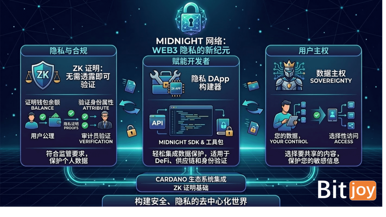 Midnight Network 正是在这个背景下破茧而出。作为 Cardano 生态的顶级隐私 Partner Chain,它不仅仅是一个“匿名币”,更是一个为合规而生的隐私 DApp 开发平台。