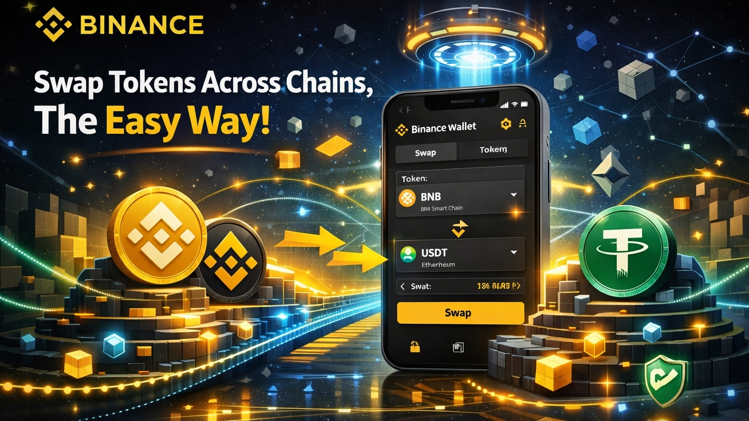 Zum Beispiel könnte jemand BNB auf der BNB Smart Chain direkt über dasselbe Interface in USDT auf Ethereum tauschen. Hinter den Kulissen verbindet sich die Wallet mit verschiedenen Anbietern und Brücken-Diensten, um die Transaktion abzuschließen.