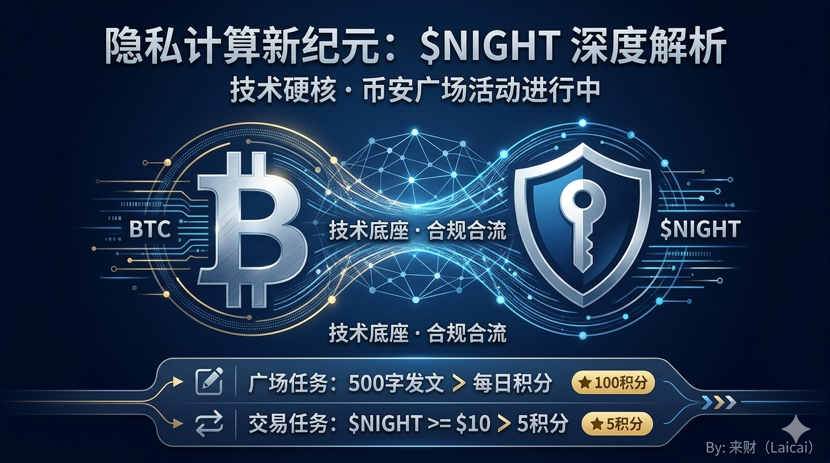 一、 宏观视角:$BTC 数字化黄金与 $NIGHT 隐私盾牌的联动