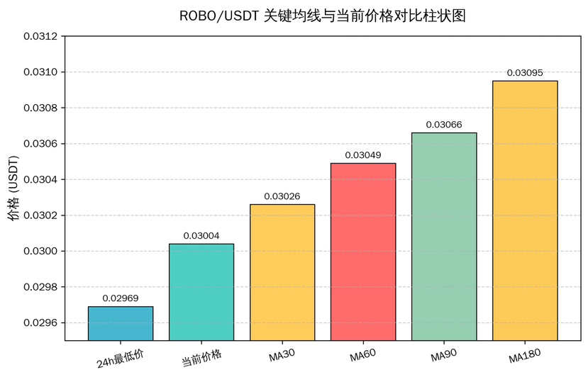 刚截了张图,ROBO现在0.03美元,24小时跌了19.18%。从高点0.05一路下来,40%就这么没了。