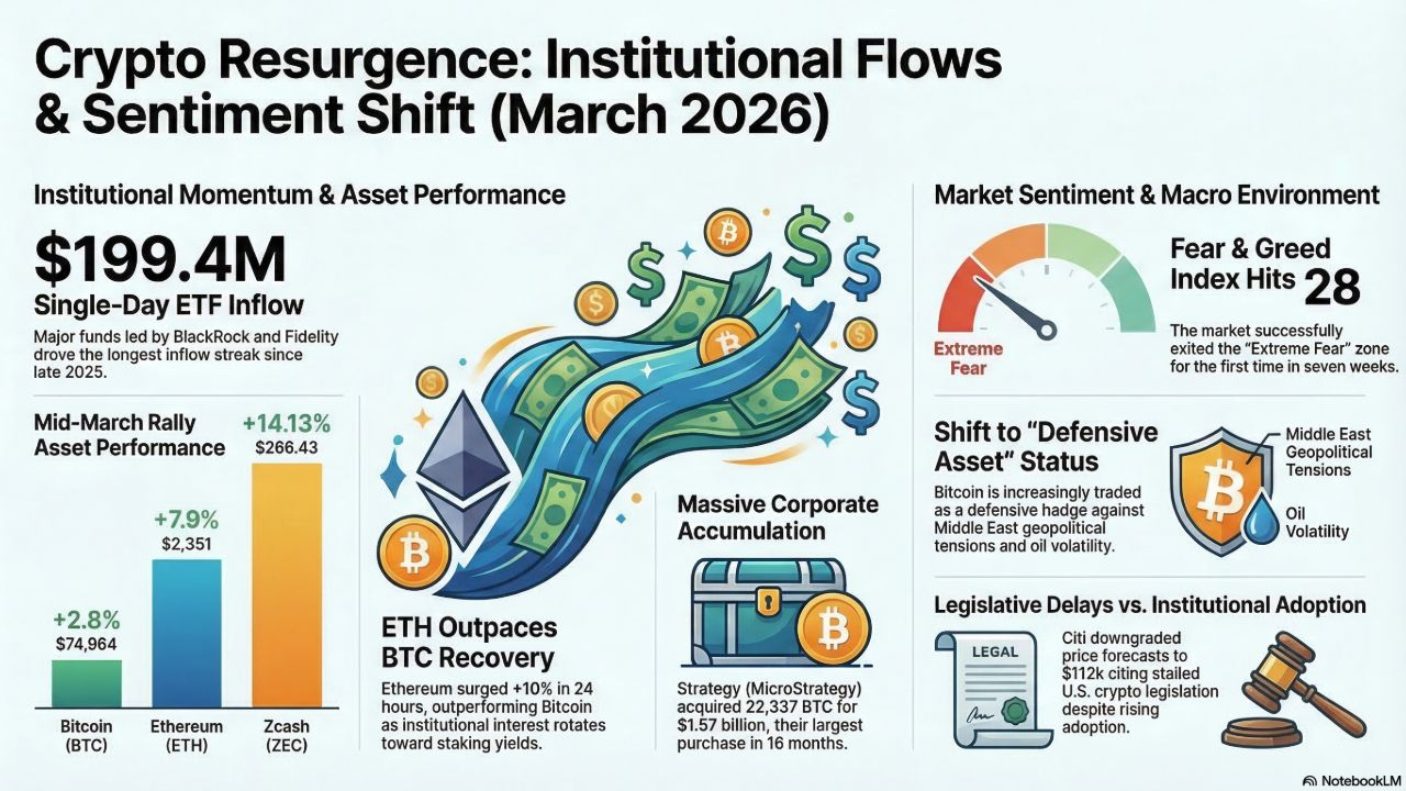 Einführung Am 17. März 2026 erlebte der Kryptowährungsmarkt eine signifikante Erholung, wobei die gesamte Marktkapitalisierung auf 2,54 Billionen Dollar stieg. Diese Wiederbelebung beendete effektiv eine 48-tägige Phase von "extremer Angst" im Markt und drückte den Crypto Fear & Greed Index auf einen Wert von 28, als das Vertrauen der Anleger zu steigen begann.