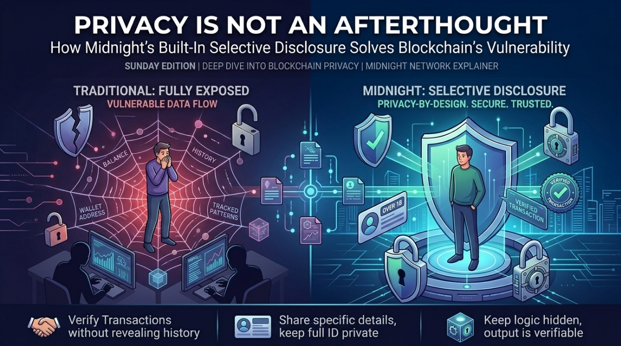 During my exploration of the Midnight network, I realized that they are tackling this issue in a different way. Rather than everything being on-chain and thus public, the network has been built on the concept of selective disclosure, which enables data to remain private.