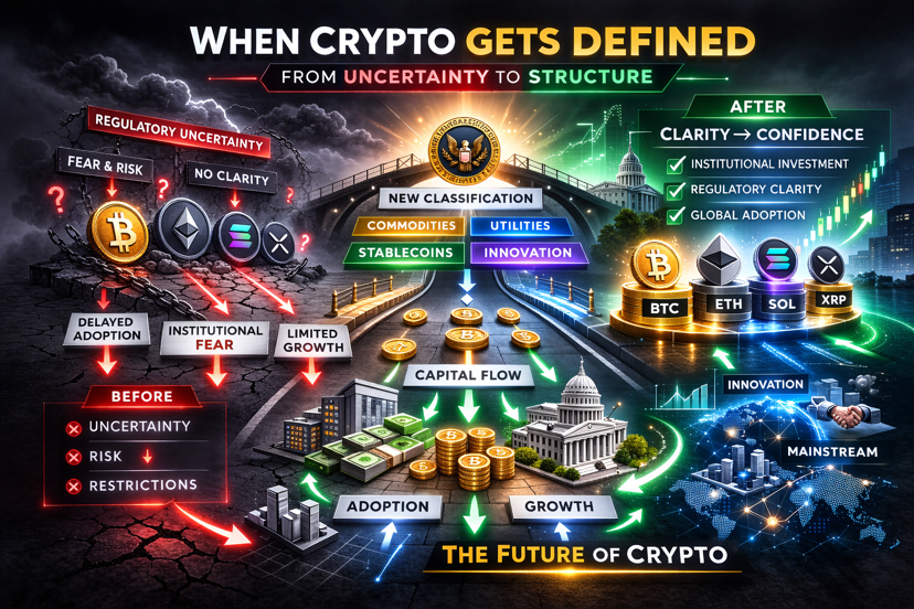 Lange Zeit war Krypto nicht unklar, weil es an Aktivität mangelte. Es war unklar, weil niemand definieren konnte, was irgendetwas tatsächlich war. Du hattest echte Nutzung, echtes Kapital, echte Ökosysteme… aber alles befand sich in einem Raum, in dem die Klassifikation über Nacht ändern konnte. Diese Unsicherheit existierte nicht nur in der Theorie, sie beeinflusste, wie sich Menschen verhielten. Größeres Geld blieb vorsichtig. Bauherren vermieden bestimmte Designs. Selbst starke Projekte bewegten sich, als würden sie beobachtet, nicht vertraut.