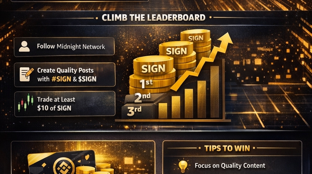 Nach dem Beitritt beginnt die eigentliche Arbeit. Die Kampagne basiert auf dem Abschluss von Aufgaben, die dir Punkte einbringen, und diese Punkte bestimmen deine Position auf dem Leaderboard. Eine der einfachsten Aufgaben ist das Folgen des offiziellen @SignOfficial Accounts auf Binance Square, was dir sofort eine kleine Anzahl von Punkten einbringt. Aber der Hauptweg, um Punkte zu verdienen, besteht darin, Inhalte zu erstellen. Du musst BeitrĂ€ge mit mindestens 100 Zeichen zu SIGN oder dem Projekt selbst schreiben. Stelle sicher, dass du den Hashtag # nennst $SIGN und tagge den offiziellen Account. Es geht jedoch nicht darum, irgendetwas nur zu posten, um die Anforderungen zu erfĂŒllenâdein Inhalt muss relevant, bedeutungsvoll und originell sein, um tatsĂ€chlich Punkte zu verdienen.