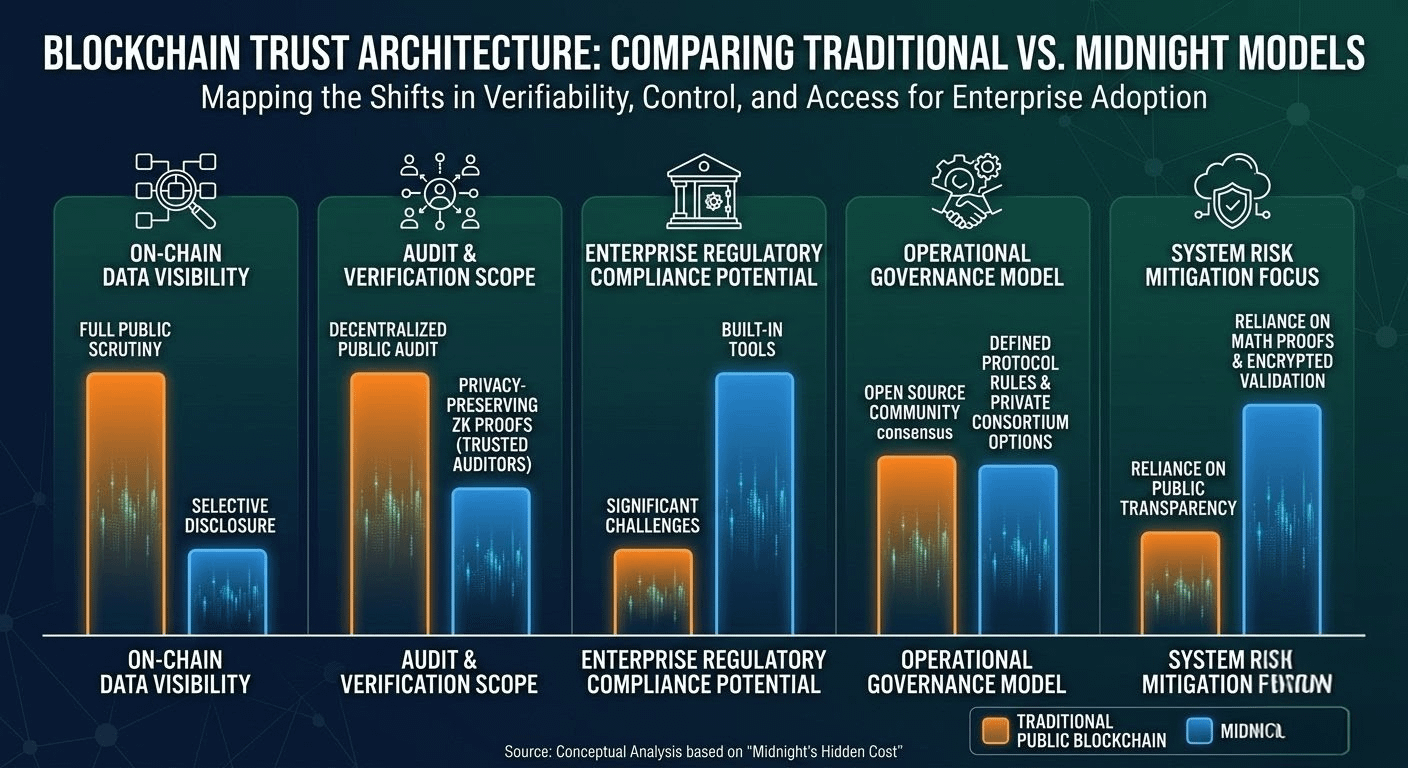 The second you start closing the curtains on parts of the system, you’re also turning down the lights for everyone else who used to be able to watch what’s really going on. Blockchain’s whole magic trick has always been that anyone could just… look. Follow the money, spot the weird patterns, call bullshit before it snowballed. Midnight isn’t pretending that’s not happening — it’s deliberately trading some of that open-book honesty for real-world usability. On paper, yeah, fair trade.