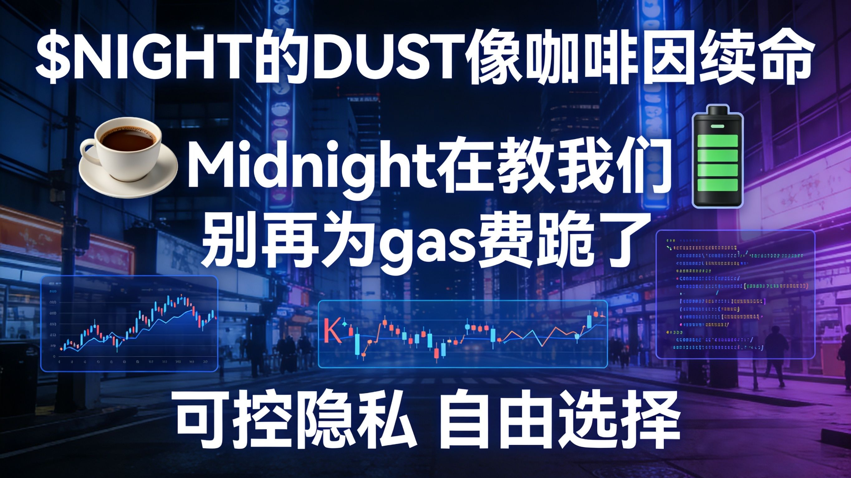 我这几年在crypto里最烦的就是gas费这玩意儿。每次链上动一动就跟抽血似的,ETH牛市时候一笔转账能顶我一个月咖啡钱,熊市时候更惨,网络空荡荡还贵得离谱。结果一堆隐私项目上来就说“我们用zk把一切藏起来”,藏是藏了,可你用一次就得烧一堆token,持有者看着余额缩水,心态直接崩。Midnight这帮人至少没走这条老路,他们把$NIGHT设计成一个能自己“续命”的东西——持仓自动生成DUST,DUST才是真用来付shielded交易费的“燃料”。#night