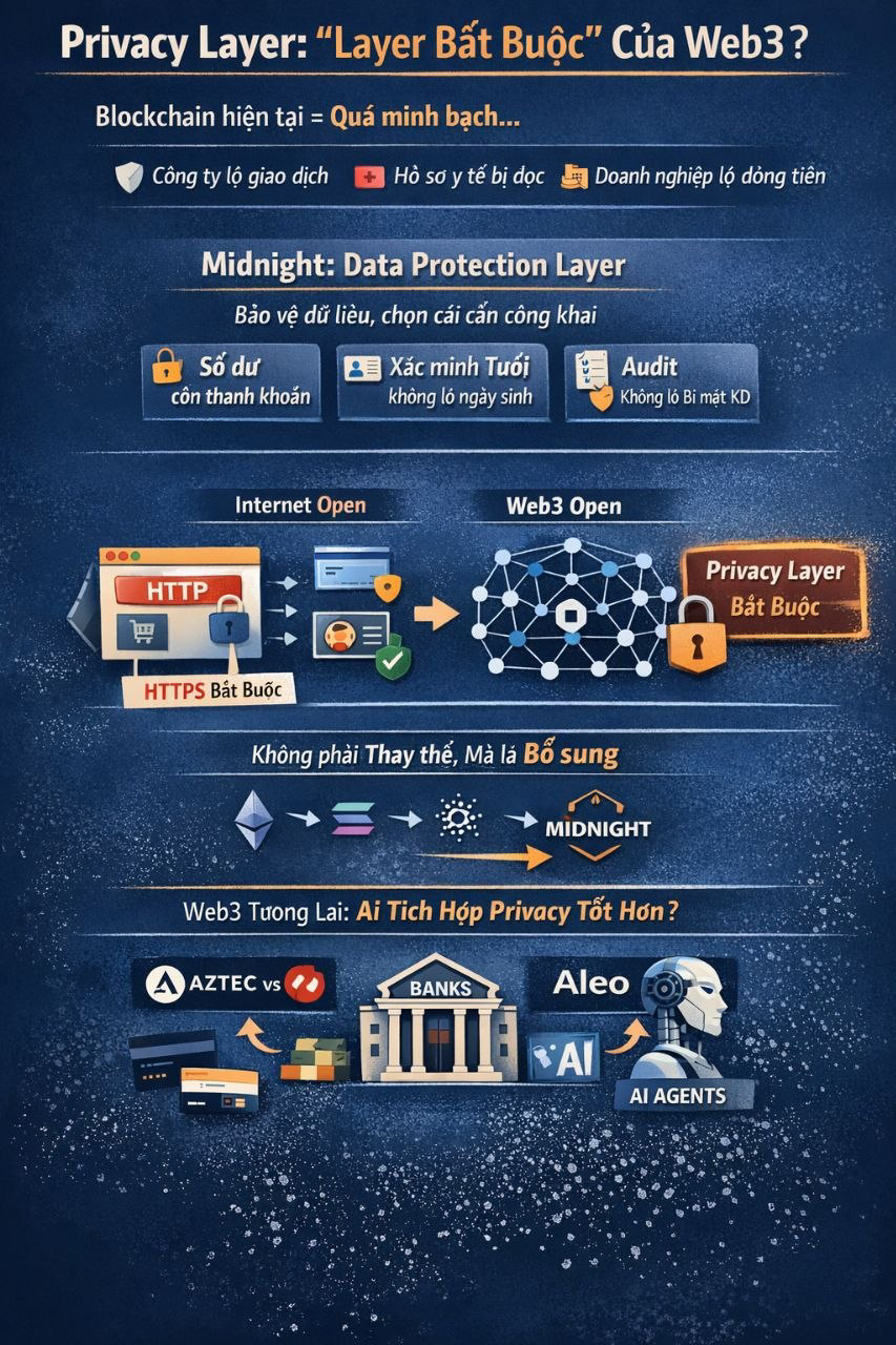 Nếu bạn muốn, mình có thể viết tiếp kiểu series (ví dụ: “Midnight vs Aztec vs Aleo”, hoặc deep dive use case thực tế kiểu banking, AI agents…) để build content dài hơi hơn.