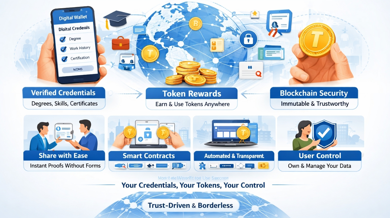 A freelancer can present only relevant skills. A student can confirm graduation without exposing personal details. A user can receive rewards without repeating registration processes across multiple platforms.