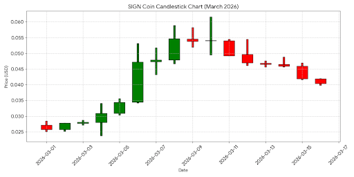 The price action for SIGN in March 2026 reflects its decoupling from the broader market "beta." While major assets have seen consolidation, SIGN recently experienced a 100% surge following its latest sovereign partnership news.