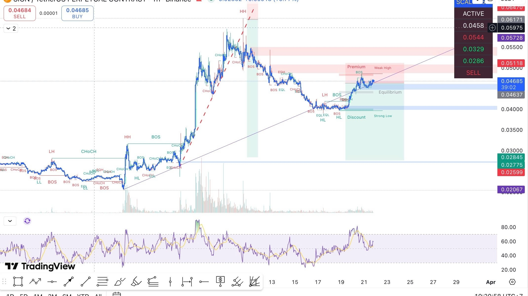 Die Reaktion am “Schwachen Hoch” stimmt mit einem potenziellen Umkehrszenario überein. Das erwartete Ziel ist das “Starke Tief” oder die Rabattzone darunter, wo Liquidität gefüllt werden kann – was ein sehr attraktives Risiko-Ertrags-Verhältnis (R:R) für die Short-Position bietet.