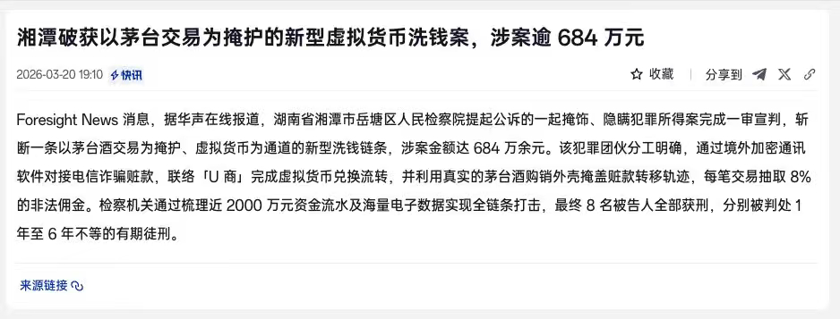 Tatsächlich ist das eigentliche Problem nicht die Währung selbst, sondern dass die schwarze Industrie anonym U-Händler verwendet, um gestohlene Gelder zu wechseln und dabei gefälschte Hüllen wie Maotai zu benutzen, um die Spuren zu verdecken, was dazu führt, dass Crypto zum "Schleier" für Geldwäsche geworden ist.