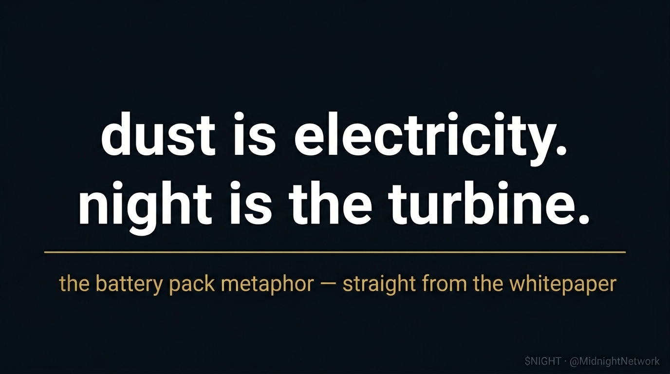 I was reading the tokenomics whitepaper and came across a paragraph i had to read twice. not because it was complicated — because it was unexpectedly clear. the whitepaper uses a physical world analogy to explain the entire NIGHT-DUST relationship, and once you see it, you cant unsee it.