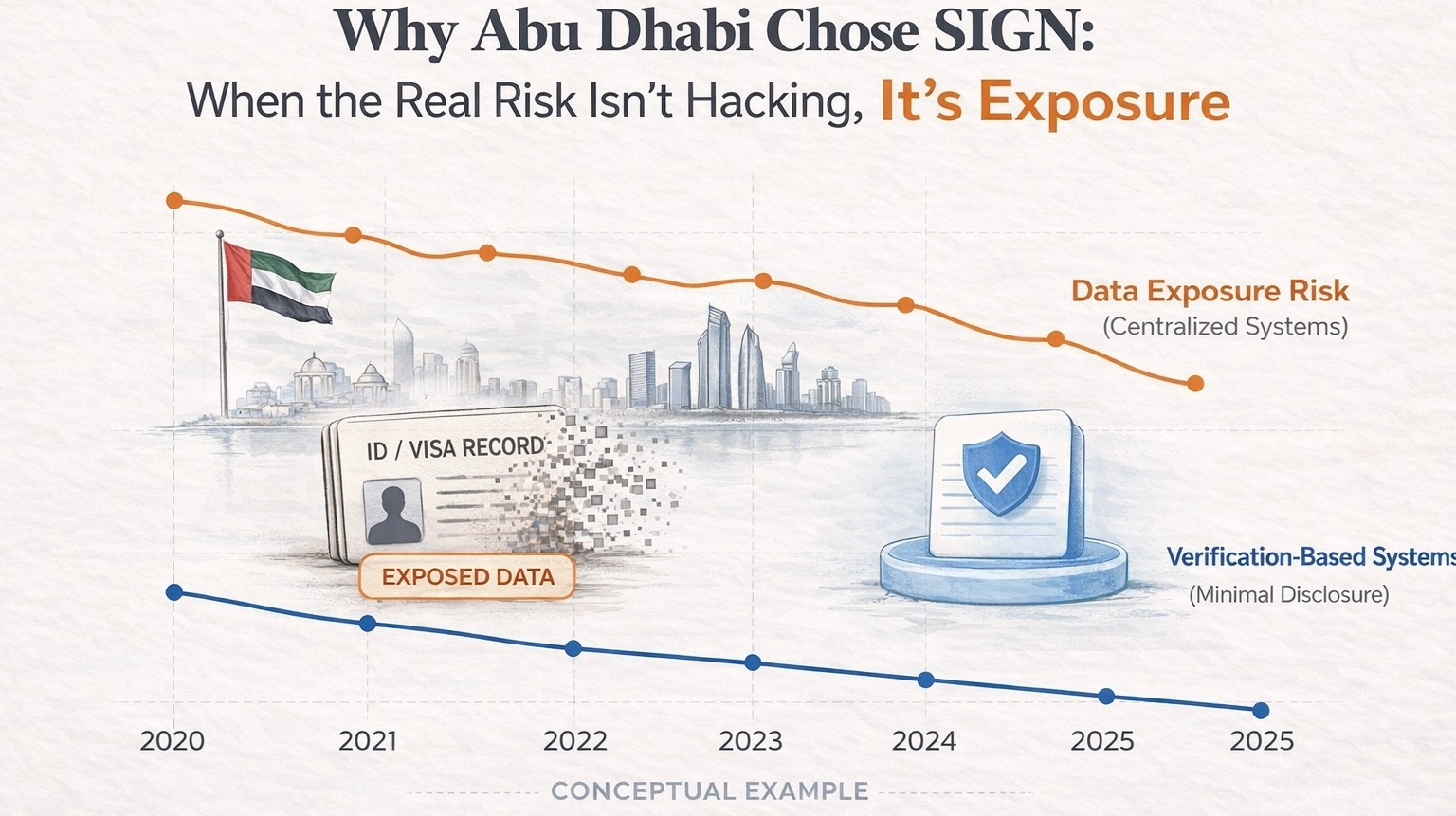 Sie werden meistens schnell erwischt und heruntergefahren, aber halte inne und denke nach, wenn ein Hacker oder Betrüger zuerst dort ankommt, könnte er gefälschte Reisepässe erstellen, Grenzsysteme überlisten oder die Infos für Identitätsdiebstahl verwenden. Grenzen verlangsamen sich, Unternehmen verlieren Zeit mit der Behebung schlechter Unterlagen, und das Vertrauen sinkt, weil die Leute anfangen zu fragen, ob ihre eigenen Dokumente sicher sind. Abu Dhabi hat sich dieses Risiko angesehen und im Grunde gesagt, dass sie nicht so weiterarbeiten können. Hier kommt SIGN ins Spiel.