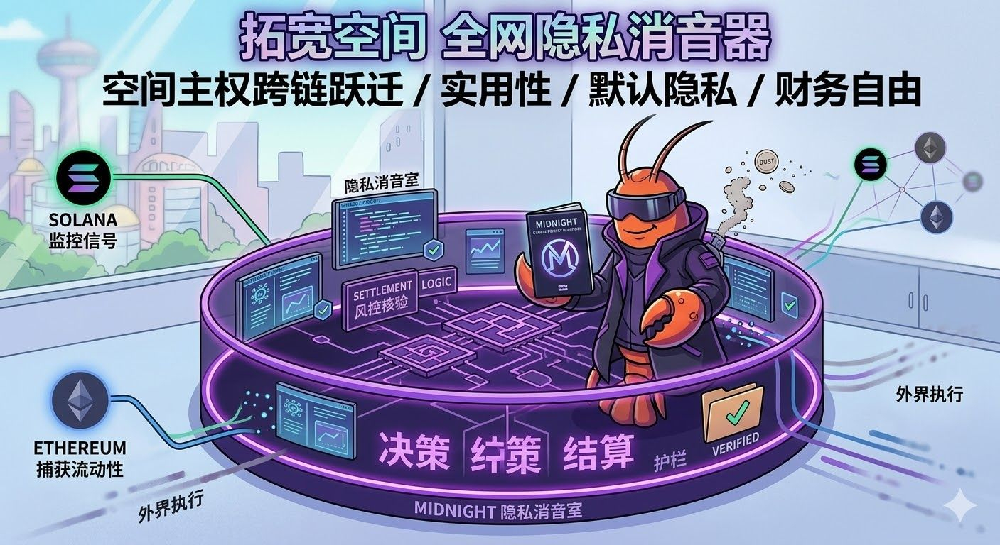 Midnight hat die logische Übertragung von Raumhoheit über verschiedene Ketten übernommen. In Zukunft kann dein Agent Signale auf Solana überwachen und Liquidität auf Ethereum erfassen, aber die sensibelsten Entscheidungen und Abwicklungen finden alle im privaten Schallschluckraum von Midnight statt.