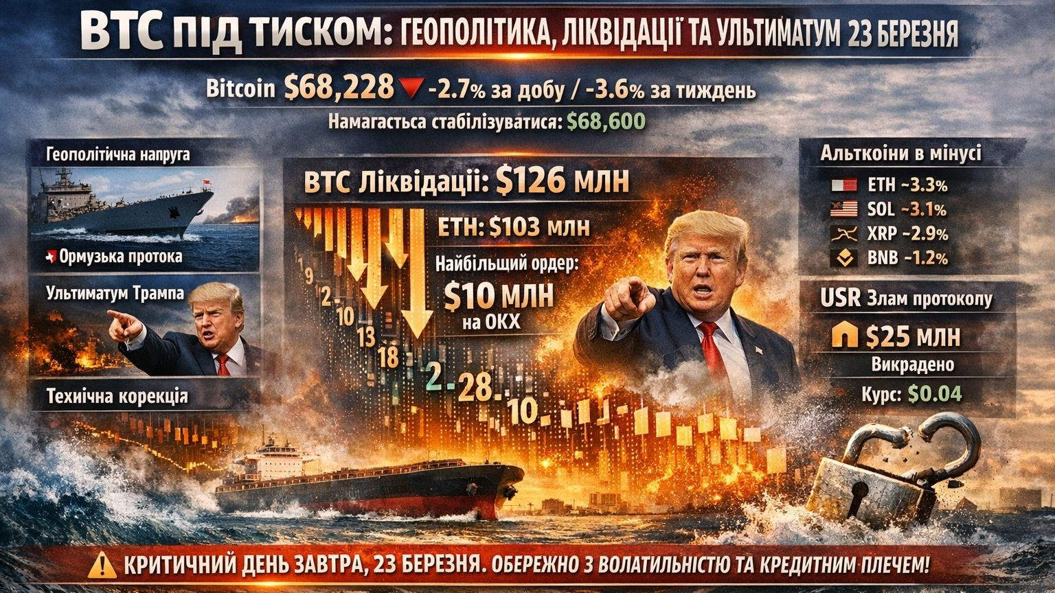 â ïž Warnung: Morgen, 23. MĂ€rz, ist ein kritischer Tag. Erwarten Sie neue Wellen der VolatilitĂ€t. Seien Sie vorsichtig mit Hebel und ĂŒberprĂŒfen Sie Ihre Stop-Loss-Orders!