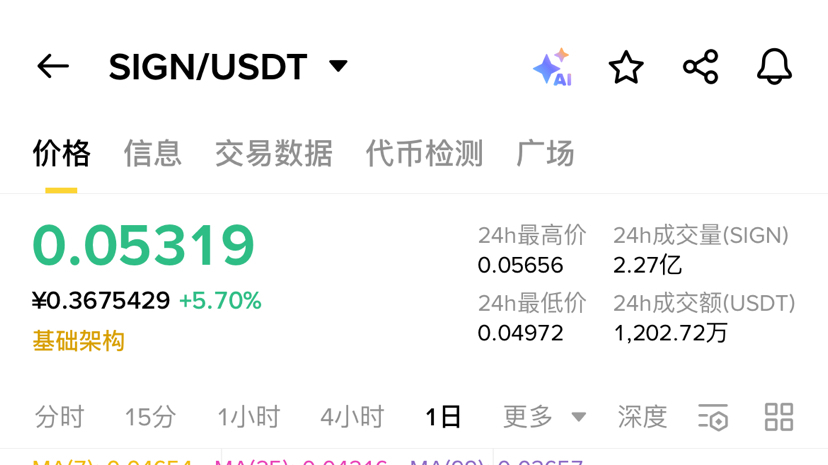 过去24小时,SIGN涨了10.8%,技术指标也确实好看——7日均线站在长期均线之上,看起来像是要走出一波像样的趋势。再加上什么阿布扎比、吉尔吉斯斯坦、塞拉利昂的国家级合作,数字身份、央行数字货币试点,故事讲得确实够大。很多人看到这些,心里就开始痒了,觉得自己终于抓到了下一个百倍币。