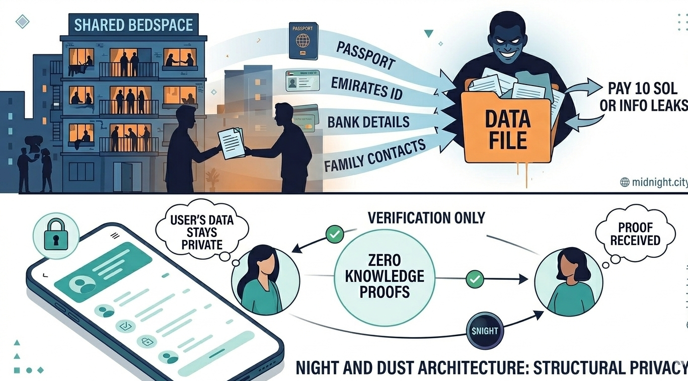 Das DESIGN von NIGHT und DUST spiegelt wider, wie ernsthaft Midnight die operative Schicht davon nimmt. DUST treibt die tatsächliche private Berechnung an, die durch Anwendungen läuft, die auf dem Netzwerk aufgebaut sind. Entwickler, die Systeme zur Überprüfung von Berechtigungen auf Midnight aufbauen, können versehentlich nicht mehr sammeln, als sie benötigen, weil die Architektur nicht erfordert, dass die zugrunde liegenden Daten überhaupt bewegt werden. Die Privatsphäre ist strukturell und nicht von den guten Absichten irgendjemandes abhängig.