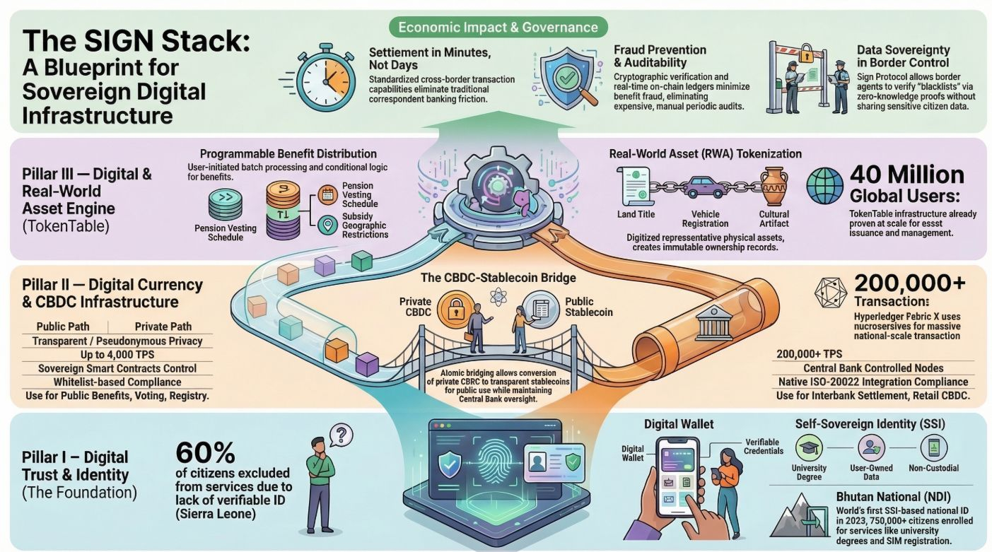 The S.I.G.N. Stack is genuinely well-designed for what sovereign clients need. The dual-layer architecture separates public attestation from sensitive national data. Hyperledger Fabric gives governments full control over who participates in verification. TokenTable has processed $3 billion in distributions across 55 million users, which means the system has been stress-tested at a scale that most enterprise blockchain infrastructure never reaches. The contracts with Kyrgyzstan and Sierra Leone are real agreements with real governments, not marketing announcements. That foundation is solid.