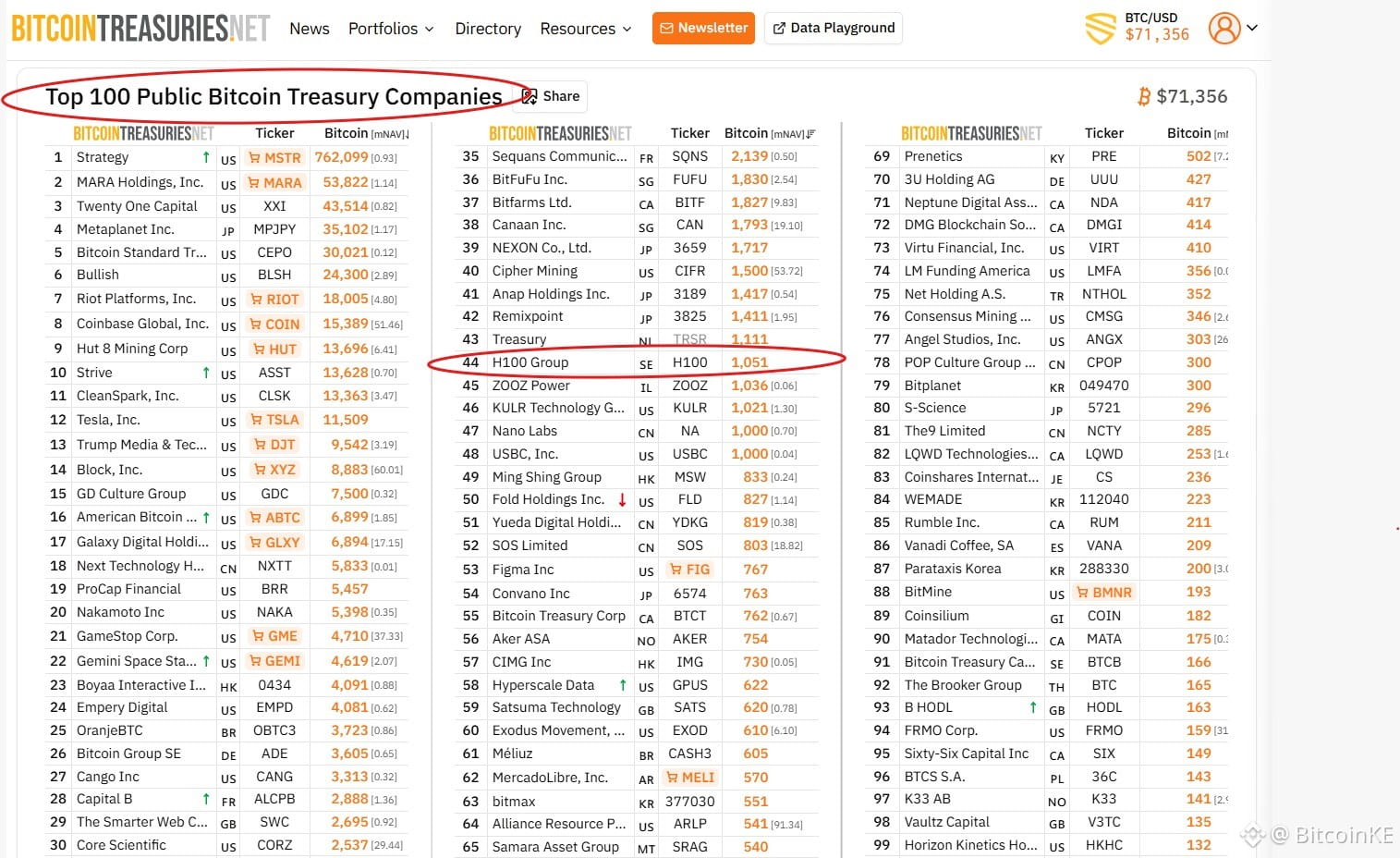 Currently, H100 is number 44 among the largest Bitcoin treasury companies worldwide, and it will go up to number 27 in the rankings if the deal goes through.