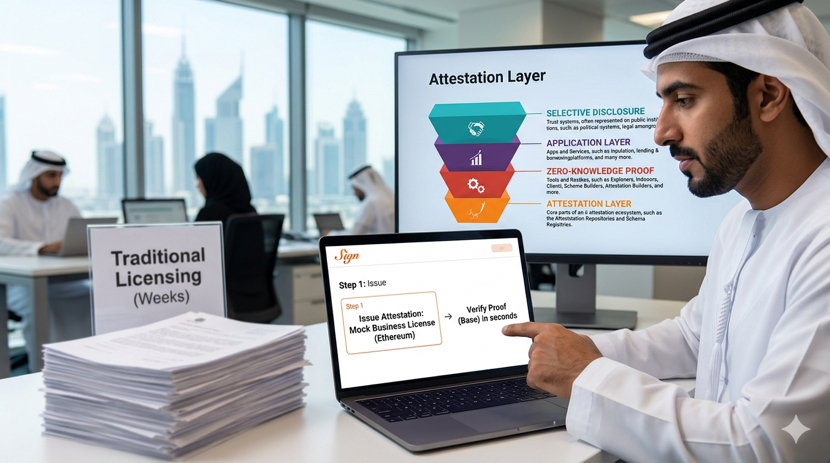 The Middle East has been pushing hard for digital transformation yet licensing processes still drag on for weeks or months with stacks of paper documents physical visits and repeated verifications. I have watched friends in Dubai and Riyadh go through the same cycle of waiting for approvals from multiple ministries while their business ideas sit idle. What struck me most when I tested Sign myself was how simple and powerful the selective disclosure mechanism feels in practice. I created a mock business license schema on Ethereum issued an attestation with only the necessary compliance details visible and verified the proof on Base in seconds without exposing any sensitive company data. The zero knowledge layer kept everything private yet fully verifiable. That single experience made me realize how Sign could turn months of paperwork into instant on-chain trust.