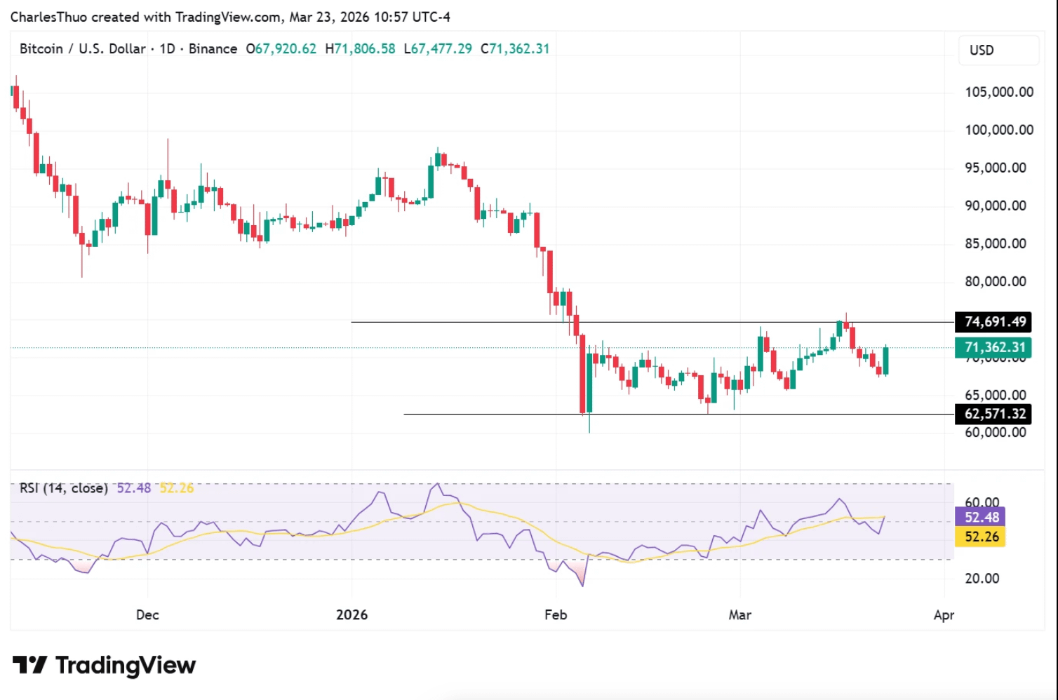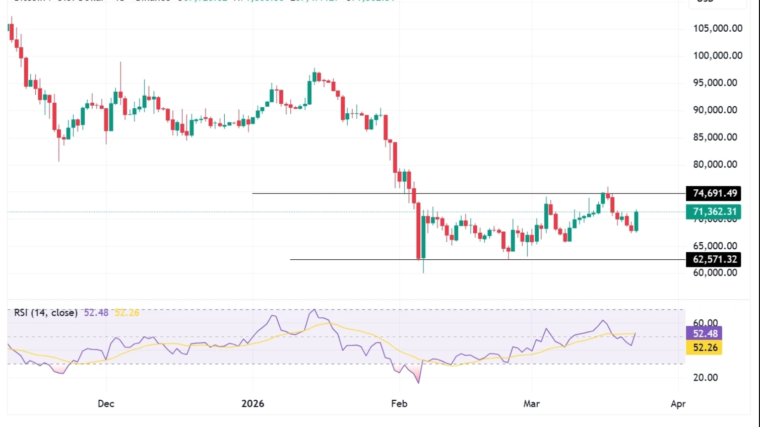 Durchbruch über $72K → öffnet die Tür zu $75K