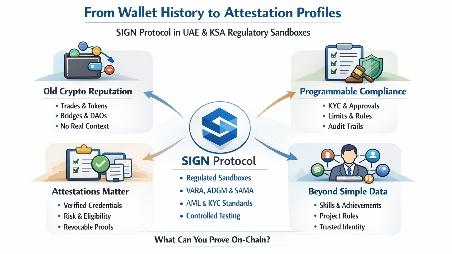 Another Sign case study goes farther by letting people prove facts from web data with privacy tools, so a claim can be checked without dumping raw personal data in public. For Gulf sandboxes, that shift matters. A founder’s test wallet may say little. A layered attestation profile can say this person passed KYC, shipped code, signed legal terms, controls treasury access, met report deadlines, and stayed within test limits.