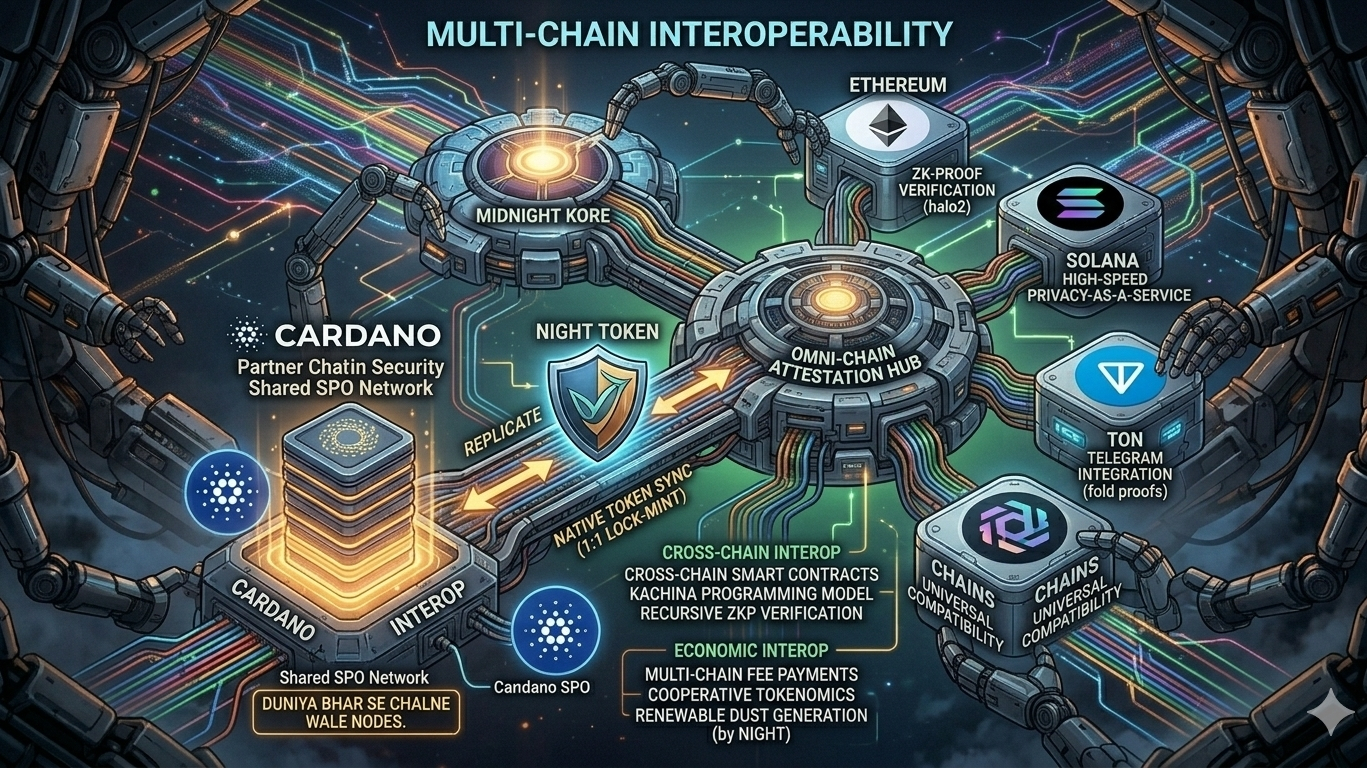 Die Multi-Chain-Interoperabilität des Midnight-Netzwerks ist ein zentrales architektonisches Element, das entwickelt wurde, um über die Grenzen isolierter Blockchains hinauszugehen. Im Gegensatz zu traditionellen Brücken, die oft als verletzliche Drittanbieter fungieren, ist der Ansatz von Midnight in sein Protokoll als Blockchain der vierten Generation integriert. Dieses Design ermöglicht es, als universelle Datenschicht zu fungieren, die ihre Datenschutzfähigkeiten im gesamten Web3-Ökosystem erweitern kann.