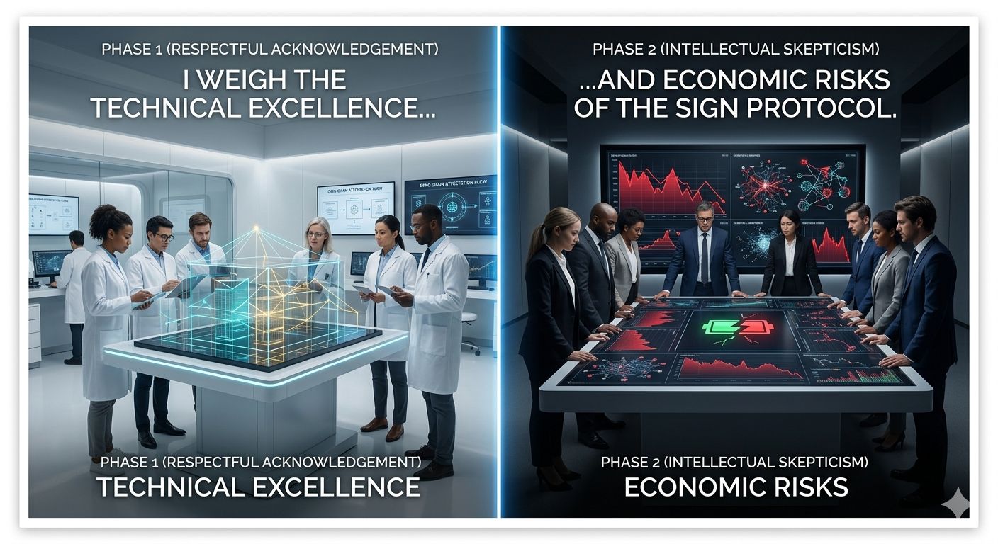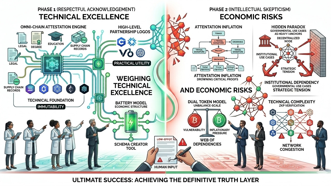 However as I transition into a more critical and analytical phase I must highlight the inherent paradoxes and economic tensions that could challenge the long term viability of the protocol. While the dual token model is designed to provide stability it risks creating a complex web of dependencies where the value of the network is overly tied to high velocity signing activity rather than genuine high quality data validation. There is a subtle but significant risk that the system could inadvertently facilitate the verification of falsehoods if the initial data sources are not subjected to the same level of decentralized scrutiny as the signatures themselves. I must also consider the potential for attestation inflation where the sheer volume of verified data points makes it difficult for users to discern between critical proofs and trivial noise. If every minor interaction becomes a signed attestation the cryptographic weight of the protocol might be diluted by a sea of inconsequential data.